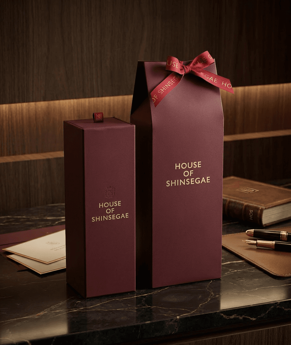 신세계는 2025년, 브랜드의 프리미엄 이미지를 강화하고 고객 경험을 한층 더 높이기 위해 ‘하우스오브신세계(House of Shinsegae)’ 와인 패키지 및 쇼핑백 제작을 진행하였습니다. 이번 프로젝트는 단순한 포장 디자인을 넘어, 신세계가 추구하는 고급스러운 라이프스타일과 브랜드 아이덴티티를 시각적으로 전달하는 데 중점을 두었습니다. 와인 패키지는 제품의 가치를 돋보이게 하는 동시에 선물용으로도 손색이 없도록 디테일한 소재 선택과 구조 설계를 반영하였으며, 쇼핑백 역시 패키지와의 통일감을 유지하면서도 휴대성과 내구성을 고려해 제작되었습니다. 전반적으로 절제된 디자인과 완성도 높은 마감으로 신세계만의 품격을 표현하였으며, 고객이 제품을 구매하고 전달하는 전 과정에서 브랜드 경험이 자연스럽게 이어질 수 있도록 설계되었습니다.